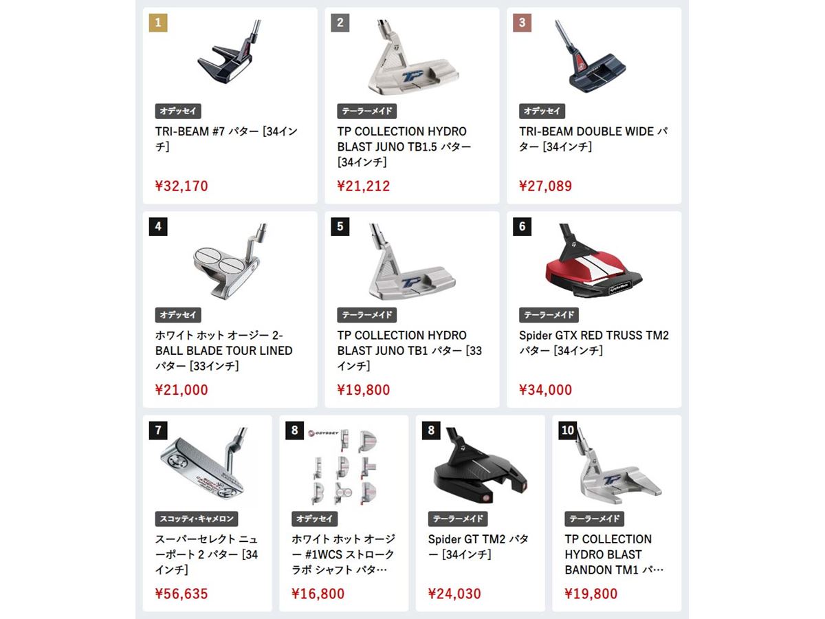 価格.comにおける、2023年9月のパター月間人気売れ筋ランキング