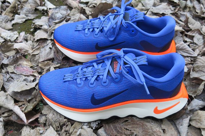 “歩く”も“走る”も快適に行える「ナイキ モティバ」。公式サイト価格は13,530円(税込)。写真のカラーはアストロノミーブルー/ハイパークリムゾン/ブラック/アストロノミーブルー