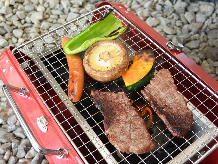 バーベキューは焼いて食べている時は楽しいけれど、準備や後片付けに手間がかかるもの。食材や道具を運ぶ労力も必要なので、人手があるほうが便利だ。それを1人でも手軽にできるようにしたのが「オヒトリサマBBQグリル」。片手で持てるケースの中に、バーベキュー道具一式が収納されている。構造と使い方を順に見ていこう。