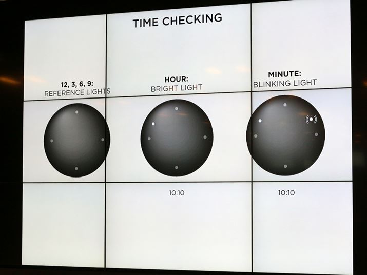 本体には、大まかな時刻を確認する時計機能も搭載。点灯しているLEDが短針、点滅しているLEDが長針の位置を示し、アナログ時計を読む感覚に近い