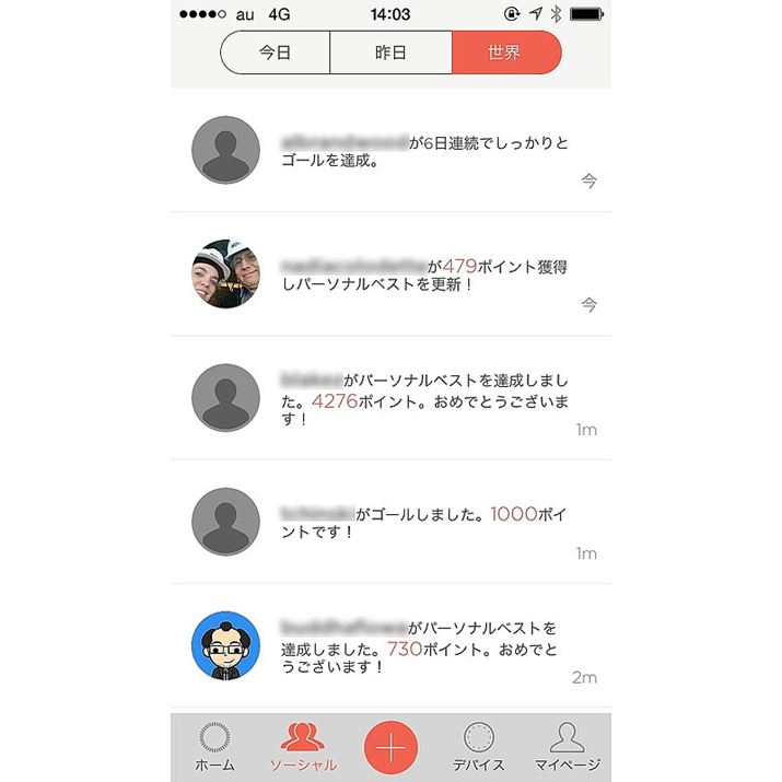 SNSを介してほかのユーザーと活動記録を共有することもできるので、友人や家族と達成率を競い合って楽しみながら目標達成を目指すといった使い方もできる