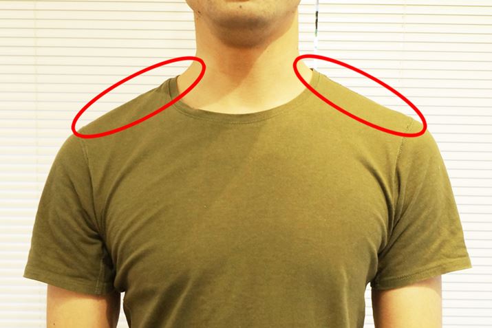 これほど極端な力の入り方はしていなくても、全指で握るスタイルでは僧帽筋が萎縮しまくり! 力を抜くことで、血行をよくしてあげましょう