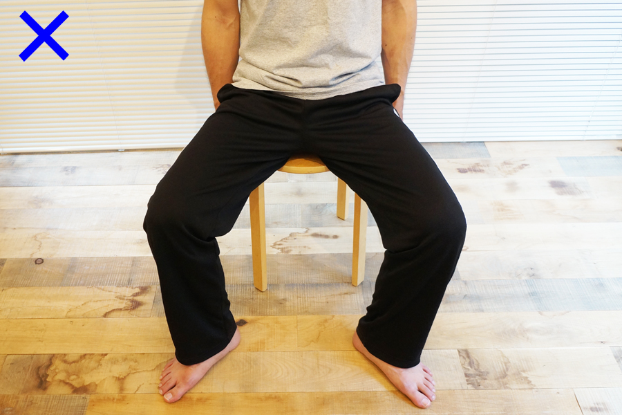 ガニ股ぎみになるのもNG。両膝の幅は、骨盤の幅とほぼ同じくらいになるようにしよう