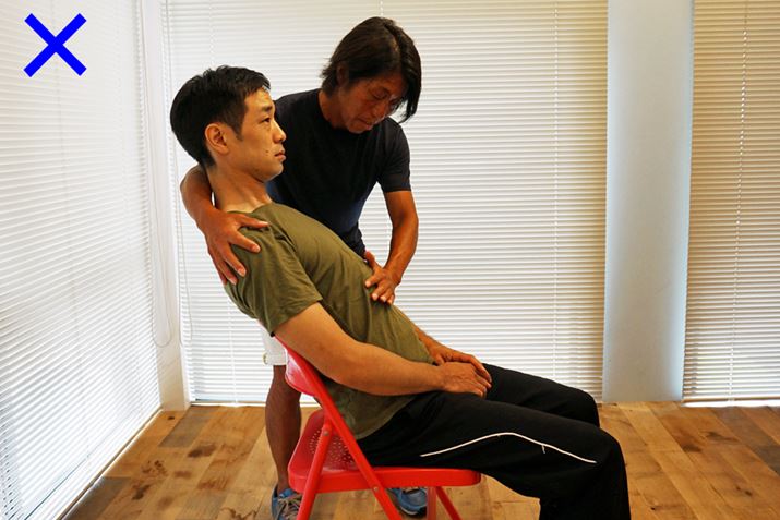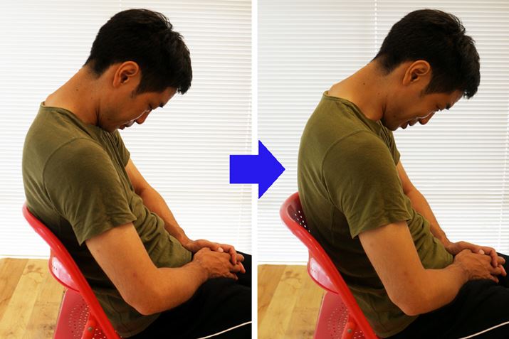1.椅子に浅く腰掛け、背中をまるめて背もたれに寄りかかる
