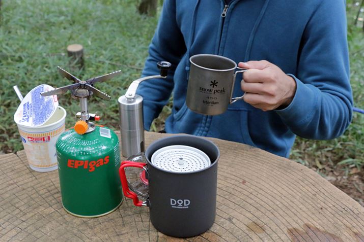筆者の想像とはまったく異なるグッズだと気付いた時には、正直、テンションがだだ下がりになりました。普通のクッカーとコーヒーミル、ストレーナーがワンセットになっただけなので、何も語ることはない、感動なんてないよ……と思ったほどです。しかし、一連の流れを体験してみると意外とアウトドアライフを満喫している自分が! なによりも一番楽しかったのは、コーヒーを淹れる工程。手挽きスタイルがたまらないし、出具合を自分で調整するパーコレーターも玄人っぽい。友達と一緒なら、このコーヒーの淹れ方はドヤ顔できそう。ただ、ウリである“ラーメンを作ったあとにコーヒーが味わえる”は、袋麺だと実現できず。クッカーが汚れてしまいますからね。少々つっこみどころはありますが、アウトドアグッズとしての個々の性能は上々ですし、トータル4,000円ならアリじゃないでしょうか!