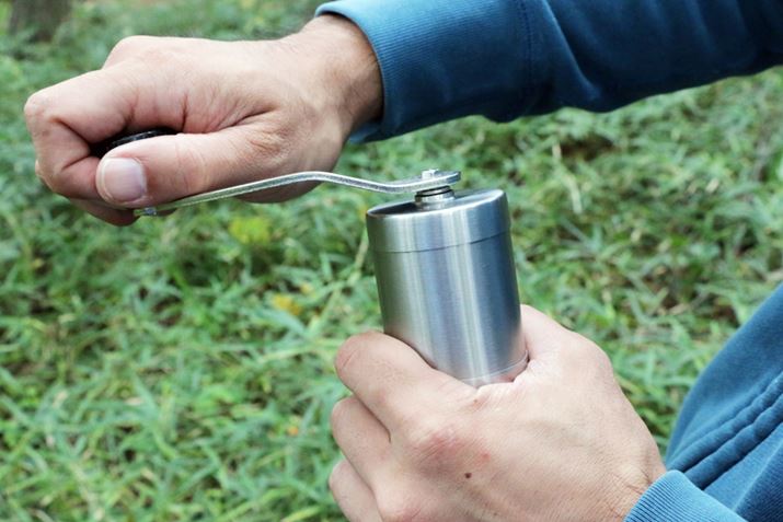 ハンドルを装着して、コーヒー豆を挽きます。手挽きは、なんだか“通”っぽい感じがしてテンションがあがりますよね。ゴリゴリと粉砕する音と感触、そして挽けば挽くほどに漂ってくるコーヒーの香りがたまりません