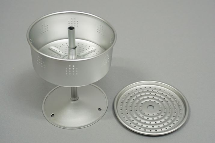 ラーメンを食べ終わるまでにStep2まで完了しておけば、食後にすぐにコーヒーを飲むことができます。ドリップやサイフォンなどいろいろな抽出方法がありますが、「ラーメン、コーヒー、そして俺」はパーコレーターを採用。パーコレーターは熱湯を循環させ、何度もコーヒー粉に噴出する抽出方法で、強めの味わいになるのが特徴です。フィルターもいらず、道具が少ないことからもアウトドア向きなのだそう。