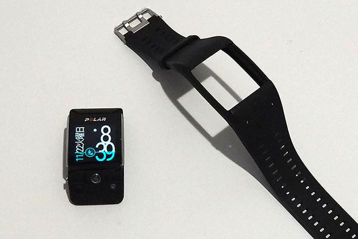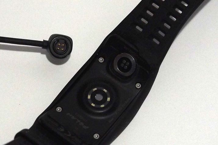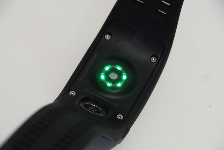 裏面には心拍数を計測するLEDが6個。一般的な「2つのLED」で計測するタイプより計測誤差が少ないそう。運動中も心拍計測が途切れることがありませんでした。このこだわりは、さすがポラール