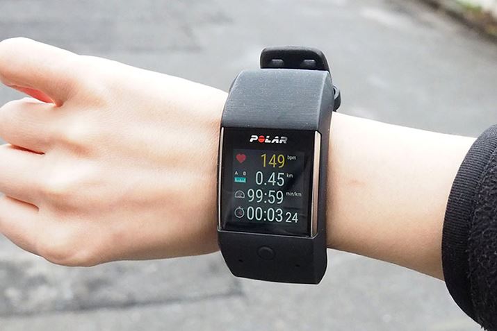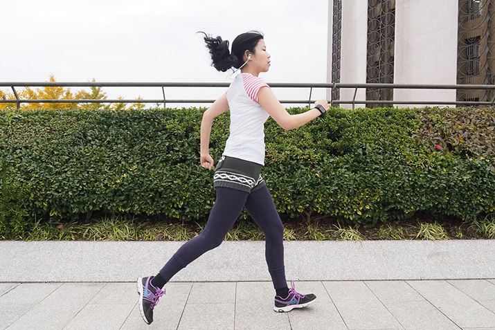 心拍数や走った距離、現在の時速などが一目でわかります。また、150回/分以上の心拍になるとブブッと振動。ペースがつかみやすいのもよいですね
