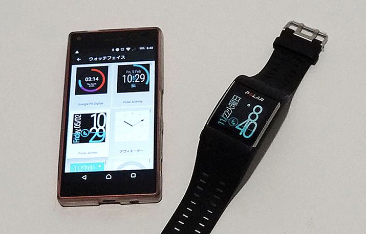 Android Wearはユーザー数も多いため、アプリや時計のフェイスデザインなども豊富。表示している時計のフェイスデザインはポラール独自のデザイン。「目標に対して達成した運動量」がひとめでわかります。デザインは本体、スマホ両方から変更可能