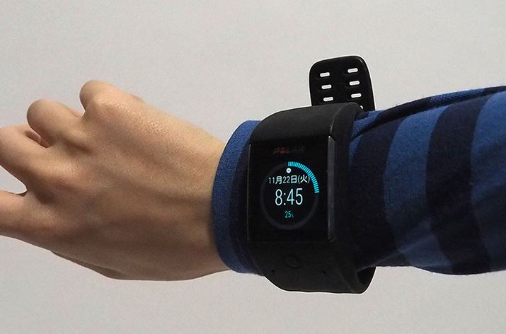 男性向けなのか、ちょっとゴツイ印象。ちなみに、運動中は心拍を計るために素肌に装着する必要がありますが、普段は服の上からでもOK