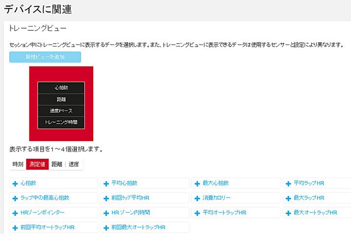 トレーニング時に表示させる項目はWEBから変更可能。この設定はなぜかスマホアプリからは編集できず、少々面倒でした