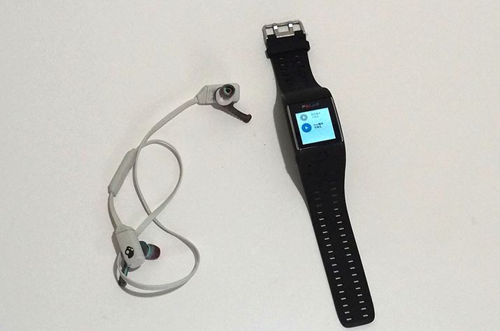 Bluetooth接続のイヤホンと接続可能。「Wear端末で再生」を選択すると、M600単体で音楽再生ができます。通勤時などは、M600のバッテリーを温存するために「携帯端末で再生」にすれば、M600で楽曲選択などのコントロールしながら、スマートフォンで音楽を再生できます