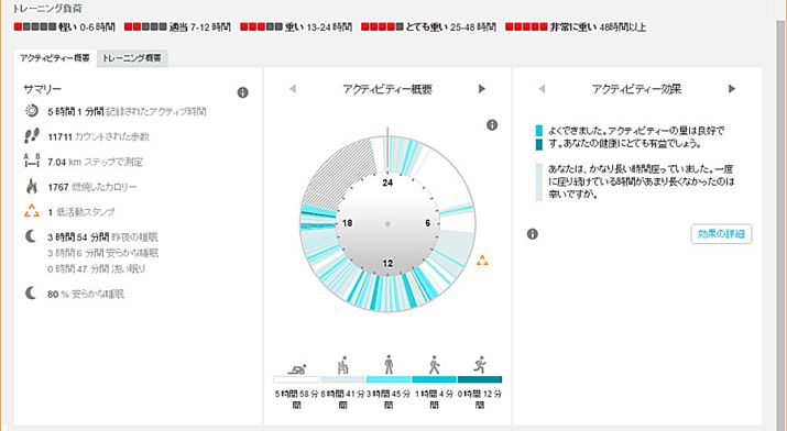 一日の状態はアプリかWEBでチェックできます。ちゃんと寝ている時間が一定以上あると、疲れていても「今日はまだ頑張れるかも!」と前向きになれます