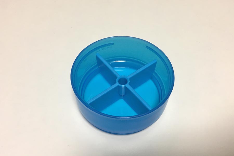 もう1つの特徴は、下部にコンテナを2つ付けられる点です。プロテインやスムージーの粉末、サプリメントなどを想定しているようです。これは結構用途が広がると思います。プロテインはもちろん、たとえばナッツやチーズなんかの軽食やお菓子も入りますし、常備薬に水なんていう組み合わせも考えられます。私は持病の薬を常用しているので、薬の持ち運びという使い方は結構するんじゃないかと思います。2つのコンテナのうち一方には仕切り板が付いています(取り外し可能)。