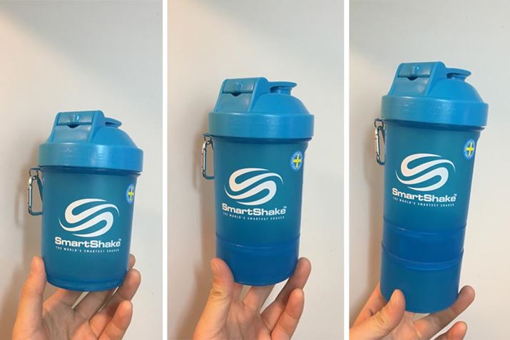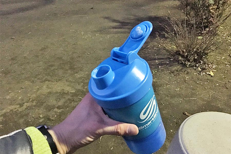 実際に水とプロテインの粉末をスマートシェイクに入れて、外出先でプロテインを飲んでみましょう。