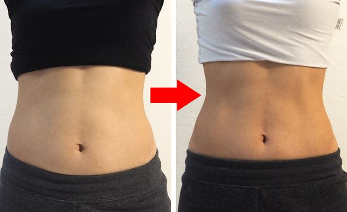2週間使用した結果はこの通り。体重はまったく変わりませんでしたが、脂肪がついていた腹部に、うっすらと縦の線が入りました。これはうれしい! ちなみに、ウエストの一番細い部分は、なんと5cmほど細くなっていました