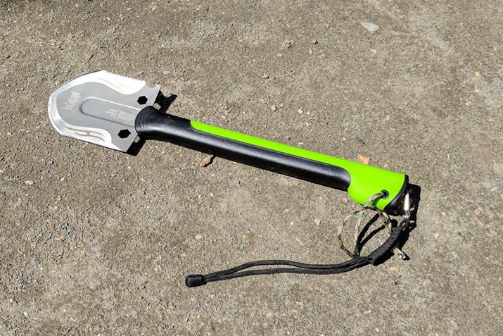 こちらは多機能スコップ。文字どおり、いろいろな機能が付いたスコップなのですが、よくあるマルチツールと違ってかなり実用的なチョイスなのが特徴。その機能を余すところなくご紹介しましょう。